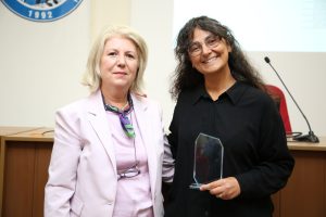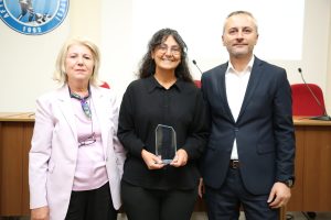 At the meeting, the Head of the Department of Business Administration, Prof. Dr. Hatice ÖZUTKU, presented a plaque to Assoc. Prof. İlkin YARAN ÖGEL. The Dean of the Faculty, Prof. Dr. Gökhan DEMİRTAŞ, congratulated our faculty member on this achievement.