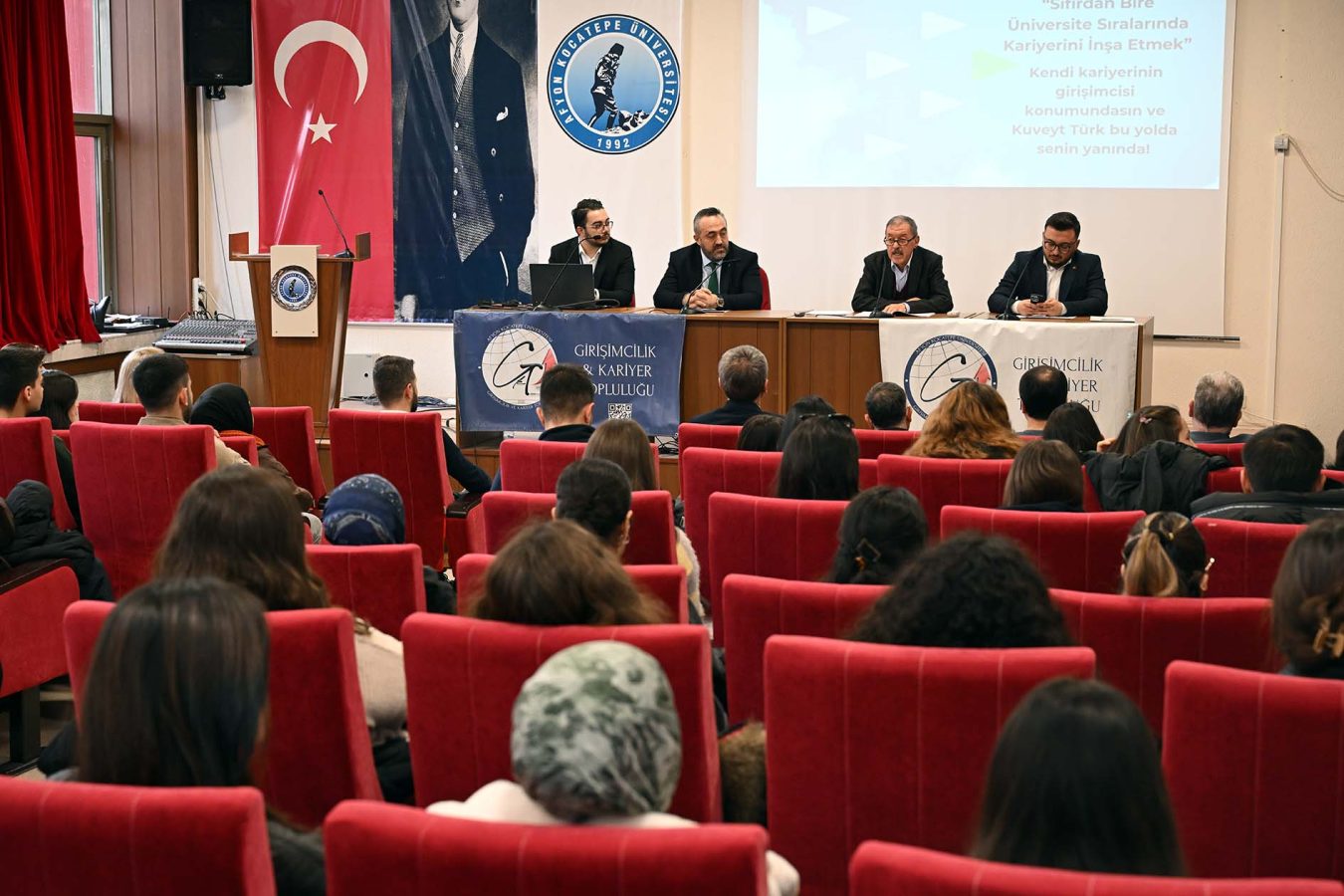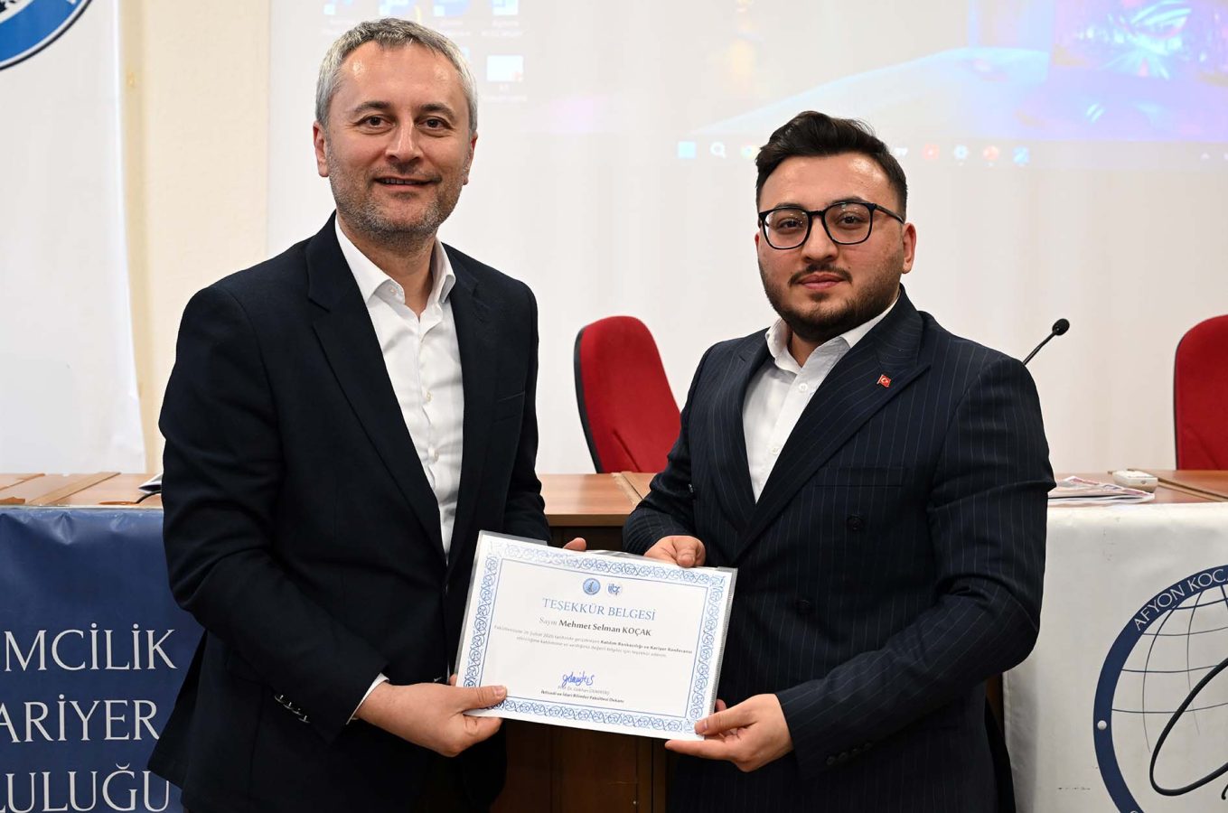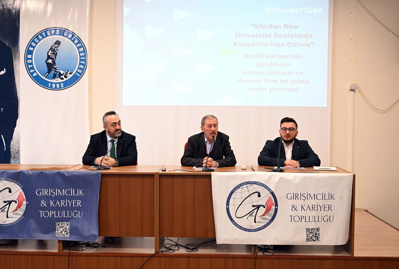 The “Participation Banking and Career Conference”, organized by the Department of Business Administration at the Faculty of Economics and Administrative Sciences (FEAS) of Afyon Kocatepe University and the Entrepreneurship and Career Society (GİKAT), was held at the Prof. Dr. Sabri Bektöre Conference Hall. The event was attended by FEAS Dean Prof. Dr. Gökhan Demirtaş, academic staff, and students.