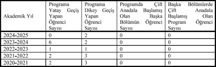 Tablo 3 – Yatay Geçiş, Dikey Geçiş ve Çift Anadal Bilgileri